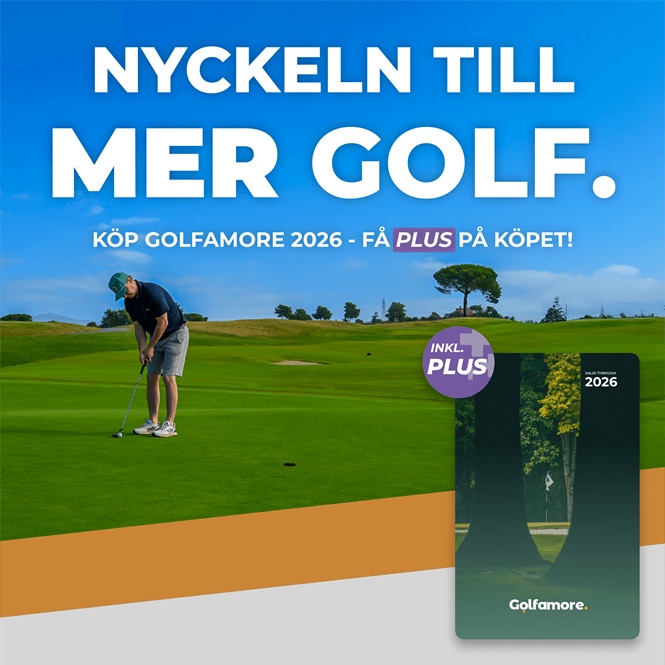 Spela ännu mer golf under 2026! Just nu har vi ett erbjudande på Golfamore där du får PLUS på köpet (värde 200 kr). Med Golfamore PLUS kan du spela dina favoriter bland Golfamore-banorna igen på utvalda PLUS-tider och fortsätta golfa till halv greenfee.
