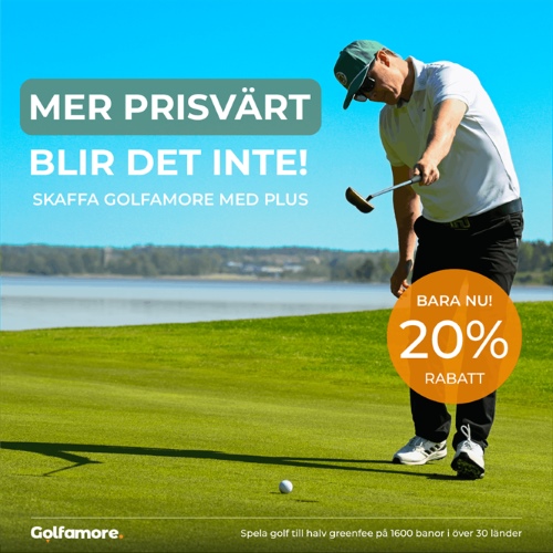 Passa på, just nu får du 20 % rabatt på Golfamore med PLUS. Med PLUS får du ännu fler möjligheter att njuta av golf till halv greenfee på utvalda tider. Det betyder att du får ännu mer golf för pengarna - hela säsongen lång.